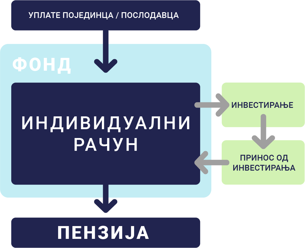 На овом сајту имате сталан и директан приступ свом рачуну у фонду. Уносом јединственог корисничког имена и шифре које добијете од нас, приступате свом рачуну на којем можете да видите преглед својих средстава – датум и висину уплата, уплатиоца, акумулирану суму, број инвестиционих јединица.